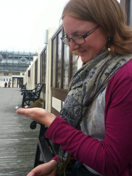 One day, late March 2012 I was walking along Worthing Pier when I spotted a little bird just sitting on a bench. It was so exhausted it actually let me pick it up! I held it for a few minutes then put it on top of the wind break in the middle of the walkway. By the time we had walked to the end and back it had gone. I’m assuming it had flown over from the continent and was just catching its breath. I think its a Green Finch but can’t be certain.